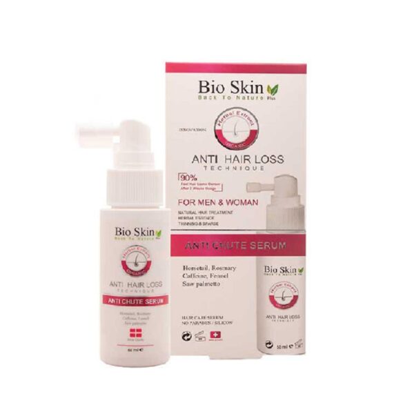 تونیک ضد ریزش مو بایو اسکین حاوی کافئین، پروتئین هیدرولیز شده، عصاره رزمرینوس و عصاره میوه رازیانه می باشد. این محصول، فاقد پارابن و مواد مضر بوده که با تقویت ریشه مو ها و افزایش گردش خون از ریزش موی سر جلوگیری می نماید. تونیک ضد ریزش بایواسکین، ترکبات موثر و گیاهی موجود در این محصول سرشار ازآنتی اکسیدان و مواد مغذی می باشد که به بهبودد سلامت مو و پوست سر کمک کرده و همچنین رشد مو را افزایش می دهد. از مزایای منحصربفرد تونیک مو میتوان به کاهش التهابات پوست سر و محافظت از مو در برابر عوامل محیطی اشاره کرد.