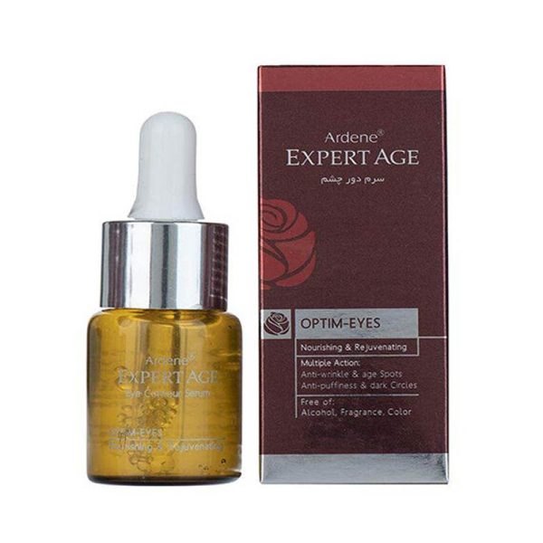 سرم دور چشم اکسپرتیج آردن تهیه شده بر پایه کمپلکس مواد کارآمد و موثر به رفع آثار پیری ناشی از افزایش سن کمک میکند. این محصول فاقد اسانس و الکل بوده و یکی از بهترین روش های رفع تیرگی دور چشم محسوب میشود. سرم دور چشم Expert Age سبب افزایش جریان خون مویرگی شده که در نتیجه استحکام بافت دور چشم را افزایش میدهد. افزایش رطوبت رسانی پوست این محصول نیز از دیگر مواردی است موجب جلوگیری از افتادگی پلکها میشود. از دیگر مزیتهای سرم برطرف نمودن حلقههای تیره و پف زیر چشم، تیرگی و لک شمرده میشود.