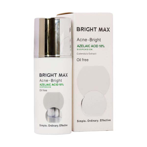 سرم ضد آکنه و لک آزلائیک اسید برایت مکس با برخورداری از ۱۰% آزلائیک اسید و عصاره کالاندولا عملکرد چندگانه برای بهبود آکنه و لک دارد. آزلائیک اسید ترکیبی بسیار موثر برای تنظیم ترشح چربی پوست، درمان آکنه، رفع لکهای حاصل از آکنه و نیز روشن کنندگی پوست است. استفاده از سوسپانسیون acne-bright برایت مکس به عنوان ترکیبی با خاصیت ضد التهاب قوی باعث شده است این محصول برای درمان آکنه پوستهای حساس جایگزین مناسبی باشد.