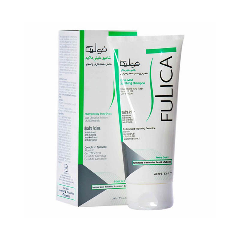 شامپو خیلی ملایم فولیکا با قدرت پاک کنندگی بسیار ملایم و بهره مندی از ترکیباتی همچون عصاره گل شقایق وحشی و سیلک پروتئین ( پروتئین ابریشم)، ترکیبات ضد التهاب و آبرسان نظیر آلانتوئین، ژل آلوئه ورا، روغن کالاندولا و عصاره بابونه، ضمن حفاظت از موها، در التیام پوست سر و ترمیم ساقه های مو، حفظ رطوبت، بهبود التهاب، قرمزی و پوسته ریزی کف سر نقش مهمی دارد و برای پوست سر حساس و خارش دار فرموله شده است. شامپو خیلی ملایم فولیکا با حجم 200 میلی لیتر در شرکت پارس حیان تولید می شود و با توجه به ترکیبات تشکیل دهنده، خواص و کاربردهایی که دارد، با قیمتی بسیار مناسب در بازار عرضه شده است. PH شامپو خیلی ملایم فولیکا کنترل شده و مناسب با پوست کف سر است، بنابراین به موها آسیب نمی رساند.
