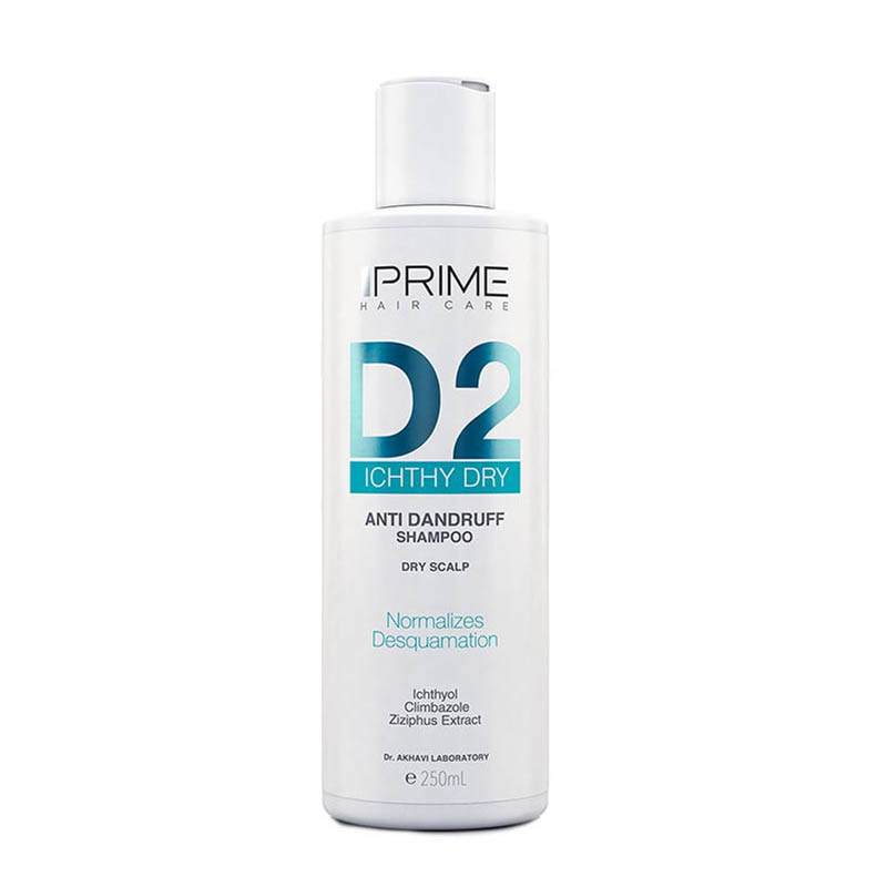 شامپو برای پوست سر خشک پرایم حاوی ترکیباتی چون کلیمبازول و ایکتیول است. این ترکیبات در از بین بردن قارچ و التهاب پوست سر موثر بوده و با پاکسازی پوست سر از پوسته ریزی آن می کاهند. یکی دیگر از ترکیبات موجود در شامپو D2 پرایم عصاره عناب است. این عصاره نه تنها در از بین بردن قارچ و باکتری های کف سر موثر نقش داشته، بلکه به سلامت تار موهای شکننده نیز کمک می کند.