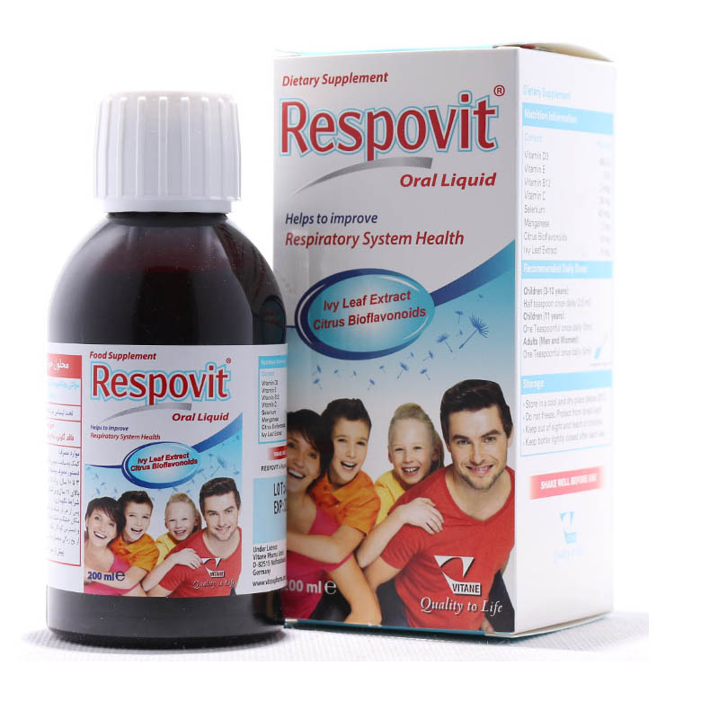شربت رسپوویت، حاوی ترکیبات ویتامینی و مینرالی به همراه عصاره برگ پیچک و بیوفلاونوئیدهای مرکبات