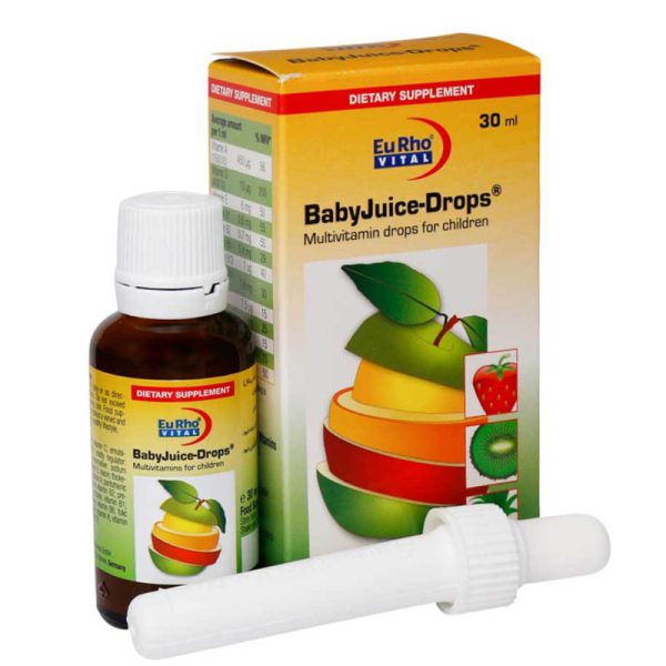 قطره بیبی جویس یوروویتال یک مکمل تغذیه ای تخصصی برای استفاده در نوزادان و کودکان زیر 2 سال می باشد. قطره بی بی جویس با فراهم نمودن 13 نوع ویتامین برای نوزادان و کودکان، تمامی ریز مغذی های حیاتی برای حفظ سلامت عمومی در این گروه سنی را تأمین می نماید. بیبی جویس حاوی ویتامین های A، D، E و K از گروه ویتامین های محلول در چربی و ویتامین های B1 ،B2 ،B6 ،B12، نیاسین، پانتوتنیک اسید، بیوتین، فولیک اسید و ویتامین ث از دسته ویتامین های محلول در آب می باشد. این مکمل با جبران کمبود های تغذیه ای نوزادان از سوء تغذیه آن ها جلوگیری کرده و به رشد و تکامل جسمی و ذهنی آن ها کمک می نماید. قطره بیبی جویس یوروویتال همچنین برای تقویت سیستمی ایمنی و بهبود خونسازی در این افراد مفید می باشد. قطره بیبی جویس برای نوزادان متولد شده در ایران انتخاب بسیار مناسبی می باشد. زیرا در هر یک میلی لیتر از این محصول 1500 واحد ویتامین A و 400 واحد ویتامین D3 وجود دارد، که به صورت اختصاصی و متناسب با نیاز نوزادان و کودکان ایرانی طراحی شده است. هر بطری از قطره بی بی جویس حاوی 30 میلی لیتر مولتی ویتامین با طعم پرتقال بوده که برای مصرف 1 ماه هر نوزاد کافی می باشد. مولتی ویتامین بی بی جویس به نام قطره بی بی جویس خارجی نیز معروف می باشد. زیرا این محصول تحت لیسانس شرکت آلمانی Euro OTC Pharma GmbH و در هگمتان داروی غرب ایران تولید می شود.