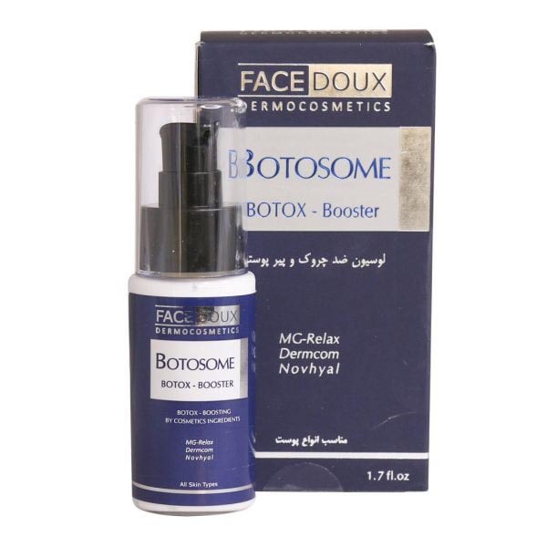 لوسیون ضد چروک بوتوزوم برای انواع مختلف پوست، به عنوان یک ضد چروک قوی عمل میکند و ایجاد چین و چروکهای پوستی را به تعویق میاندازد. یکی از نشانههای ناخوشایند افزایش سن انسان، بروز چین و چروک در پوست است. معمولا افراد، اقدامات مختلفی را در راستای مقابله با چین و چروک انجام میدهند و بر همین اساس محصولات ضد چین و چروک مختلفی در بازار طراحی و تولید شده است که یکی از آنها لوسیون ضد چروک Botosome فیس دوکس است. از جمله تاثیرات مثبت این محصول میتوان به تحریک و بازسازی سلولهای پوستی، افزایش سنتز کلاژن و الاستین پوست، افزایش خاصیت کشسانی پوست، کاهش استرس عضلات پوست و جوانتر شدن پوست نیز اشاره نمود. از این لوسیون میتوان پس از بوتاکس، مزوتراپی و حتی لیزرهای جوان کننده جهت تقویت و افزایش اثرات آنها استفاده کرد.