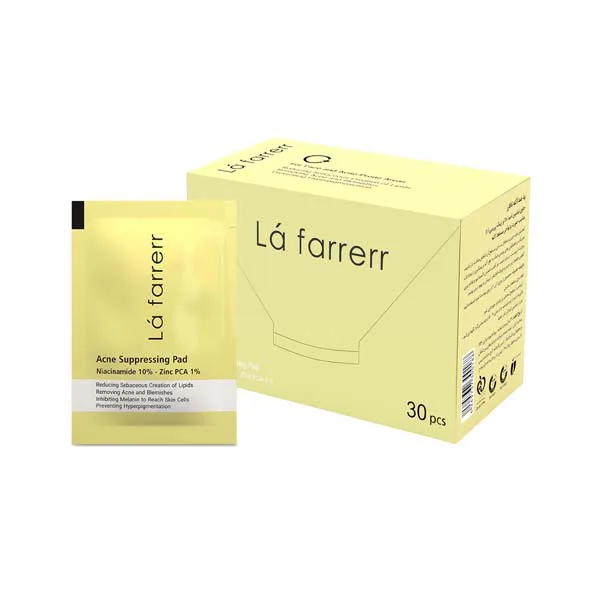 پد ضد آکنه لافارر مناسب صورت و نواحی مستعد آکنه و حاوی نیاسین آمید 10% و زینک پی سی آ 1%