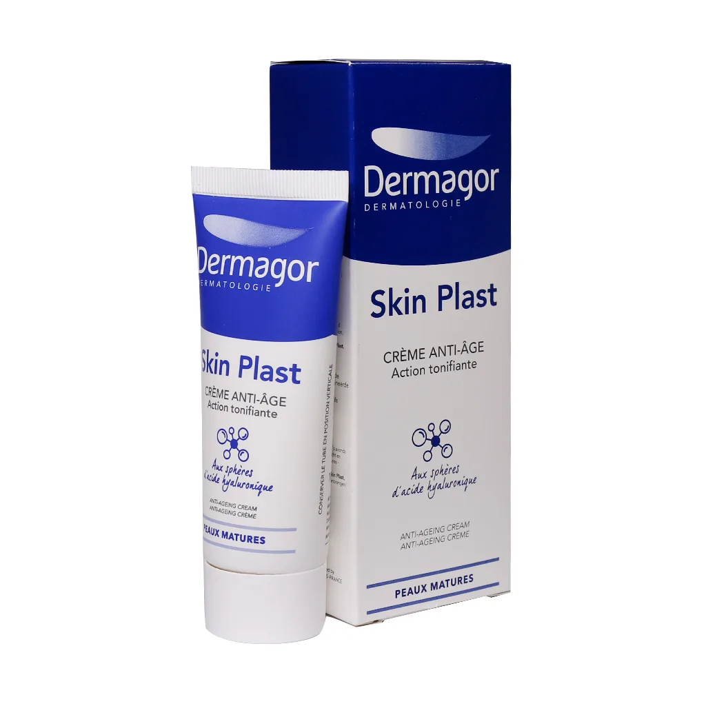 کرم اسکین پلاست درماگور حاوی ویتامینE نرم کننده قوی پوست و حفظ کننده آب در لایههای بالایی پوست است که موجب ایجاد نرمی، لطافت و طراوت در پوست میشود. این محصول حاوی ذرات مس ماده محرک برای سنتز کلاژن، الاستین و اسید های نوکلئیک و ذرات روی یکی از مواد ضروری در روند تقسیم سلولی و تولید DNA است. این کرم حاوی موادی است که به تولید کلاژن در سلولهای پوست کمک می کند. خاصیت آبرسانی خوبی هم دارد که مانع از خشکی پوست میشود. مواد ویتامینی موجود در محصول پیش رو موجب تقویت سیستم دفاعی پوست می شود. نه تنها موجب صاف شدن چینوچروکهای موجود در پوست میشود، بلکه ترکیباتی هم برای حفظ پوست در برابر رادیکالهای آزاد دارد. استفاده از این کرم سفت کننده پوست فرآیند پیری پوست را کندتر می کند. با توجه به آبرسانی قوی، چینوچروکهایی که پر شدهاند در دراز مدت به حالت اولیه برگشته و دیرتر خالی خواهند شد.