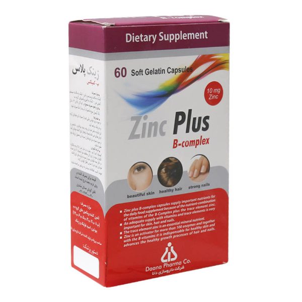 کپسول زینک پلاس ب کمپلکس دانا حاوی ۱۰ میلی گرم مینرال روی یا زینک است و ۱۰۰ درصد نیاز روزانه شما به این عنصر را برطرف میکند. از جمله فواید خرید زینک پلاس ب کمپلکس تاثیر آن در ارتقا و حفظ زیبایی پوست ، مو و ناخن است. به طور خلاصه زینک در حفظ سلامت پوست و جلوگیری از ریزش مو نقش بسیار مهمی دارد. به علاوه این عنصر از تشکیل لکههای سفید رنگ روی ناخن جلوگیری کرده و موجب سلامت و استحکام ناخنها میشود. روی علاوه بر مزایایی که برای سلامت پوست و مو دارد؛ سیستم ایمنی بدن را تقویت کرده و در حفظ سلامت قلب و عروق نیز تاثیر بسزایی دارد.