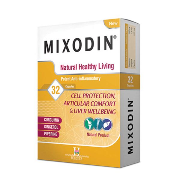 میکسودین، فرآورده طبیعی به شکل کپسول است که جهت کمک به ساخت غضروف و کاهش سفتی و خشکی و افزایش انعطاف پذیری مفاصل قابل استفاده است. میکسودین حاوی زردچوبه، زنجبیل و پیپرین استخراج شده از فلفل سیاه است که به عنوان فرآورده ای ضد التهاب، به کاهش درد و التهاب مفاصل و محافظت از سلول های بدن در برابر آلاینده های محیطی کمک می کند. قرص میکسودین، علاوه بر موارد ذکر شده می تواند در کمک به بهبود کبد چرب نیز نقش داشته باشد. کپسول میکسودین هولیستیکا در جعبه های 32 عددی حاوی 2 بلیستر 16 تایی و مناسب افراد بالای 6 سال، تحت لیسانس هولیستیکا فرانسه و توسط شرکت دارویی آرین سلامت سینا ایران تولید شده است.