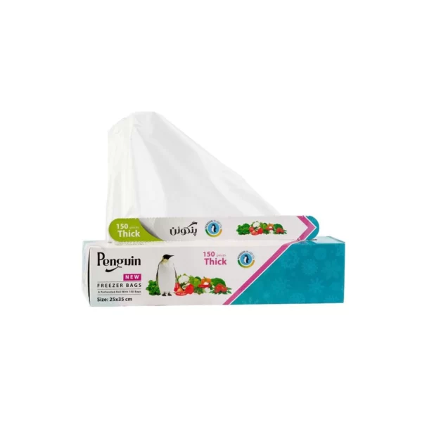 وجود کیسههای پلاستیکی برای استفاده روزمره و همچنین منجمد کردن مواد غذایی، در هر خانهای لازم است. کیسه فریزر رولی ضخیم «Penguin» (پنگوئن)، نسبت به انواع دیگر کیسههای موجود در بازار، از ضخامت بیشتری برخوردار است تا با اطمینان بیشتری مواد غذایی را در آن ریخته و داخل یخچال یا فریزر نگهداری کنید. بستهبندی این کیسه بهصورت رول طراحی شده که میتوانید با یکدست آن را بیرون کشیده و با دست دیگرتان با استفاده از نقاط پرفراژ به سادگی آن را از کیسه بعدی جدا کنید. ابعاد جعبه این مدل 25 × 35 سانتیمتر بوده و حاوی 150 عدد کیسه است. با وجود استحکام و مقاومت در برابر پارگی، مواد غذایی دیگر در طبقات فریزر نشت نمیکنند. جنس این کیسههای کاملاً بهداشتی از پلیاتیلن است. شرکت پنگوئن پلاست از بنیانگذاران صنعت فیلم و پاکت سازی پلاستیک در ایران است و با بیش از چند دهه سابقه در این زمینه، با هدف سهولت در زندگی روزمره افراد، به فعالیت خود ادامه میدهد. از دیگر محصولات این شرکت میتوان به سفره یکبارمصرف، کیسه زباله، پاکت ساندویچ و … اشاره کرد. تمامی این تولیدات با استفاده از فناوریهای برتر دنیا ساخته میشوند.